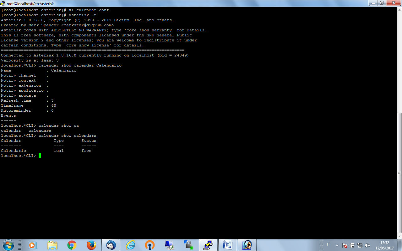 Il nome del calendario nel mio caso è molto originale… dalla cli di Asterisk il comando: