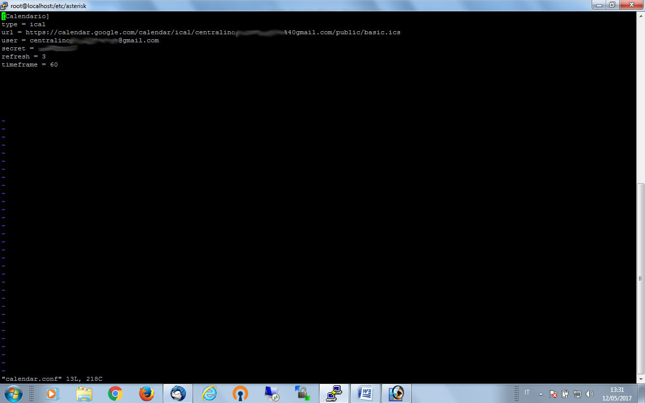 Il file da configurare per interfacciare Asterisk a Google Calendar è calendar.conf.
